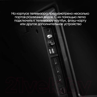 • Входы выходы USB, аудиовыход 3.5 мм, RJ-45 (LAN), D-Sub (VGA), аудиовход 3.5 мм, S/PDIF (коаксиальный), AV in, CI/CI+, антенный вход (RF)