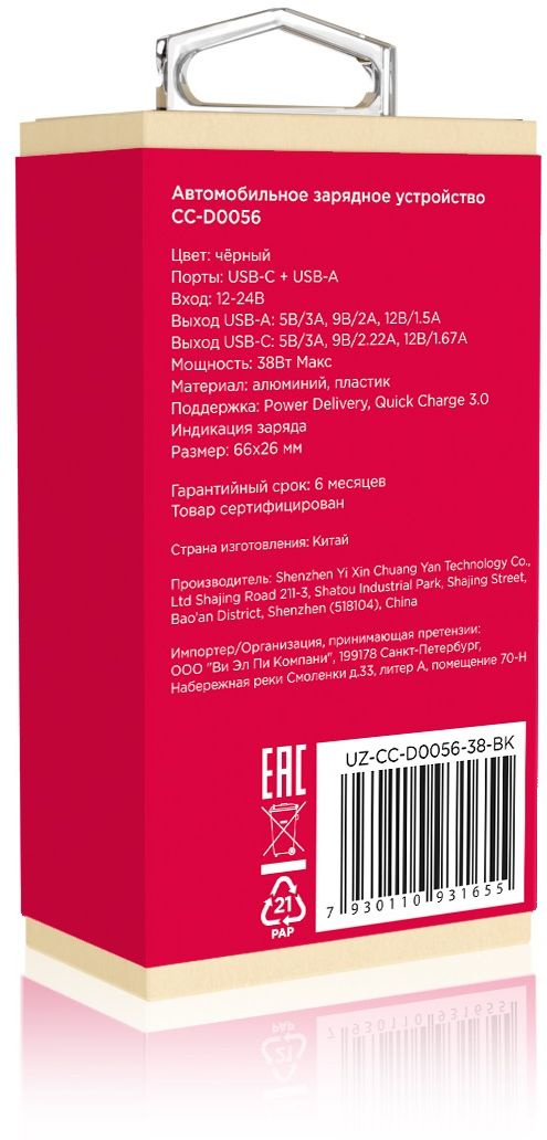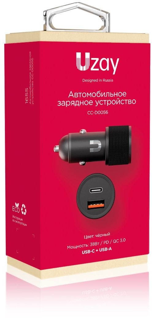 Автомобильное зар./устр. Uzay 3A+1.5A (PD+QC) USB-C/USB-A универсальное черный (UZ-CC-D0056-38-BK)