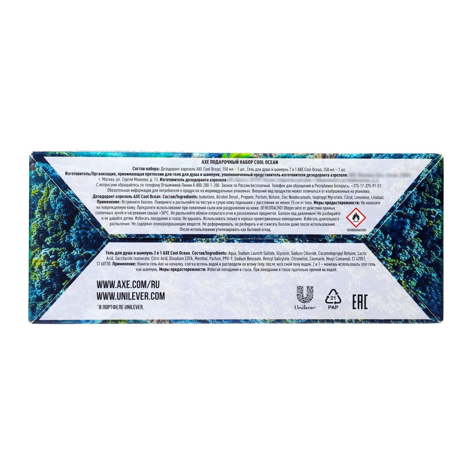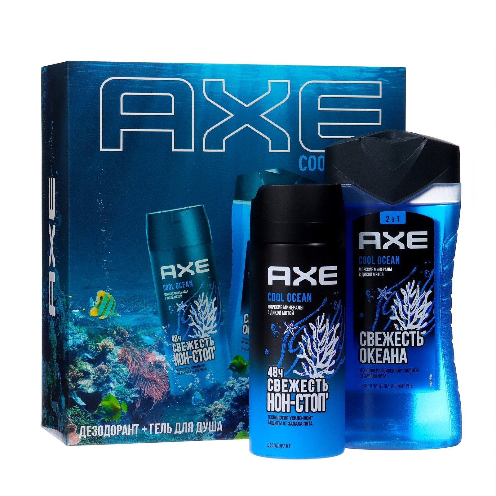 Подарочный набор Axe Cool Ocean: гель для душа и шампунь 2в1,250мл+дезодорант-аэрозоль,150мл 1012646