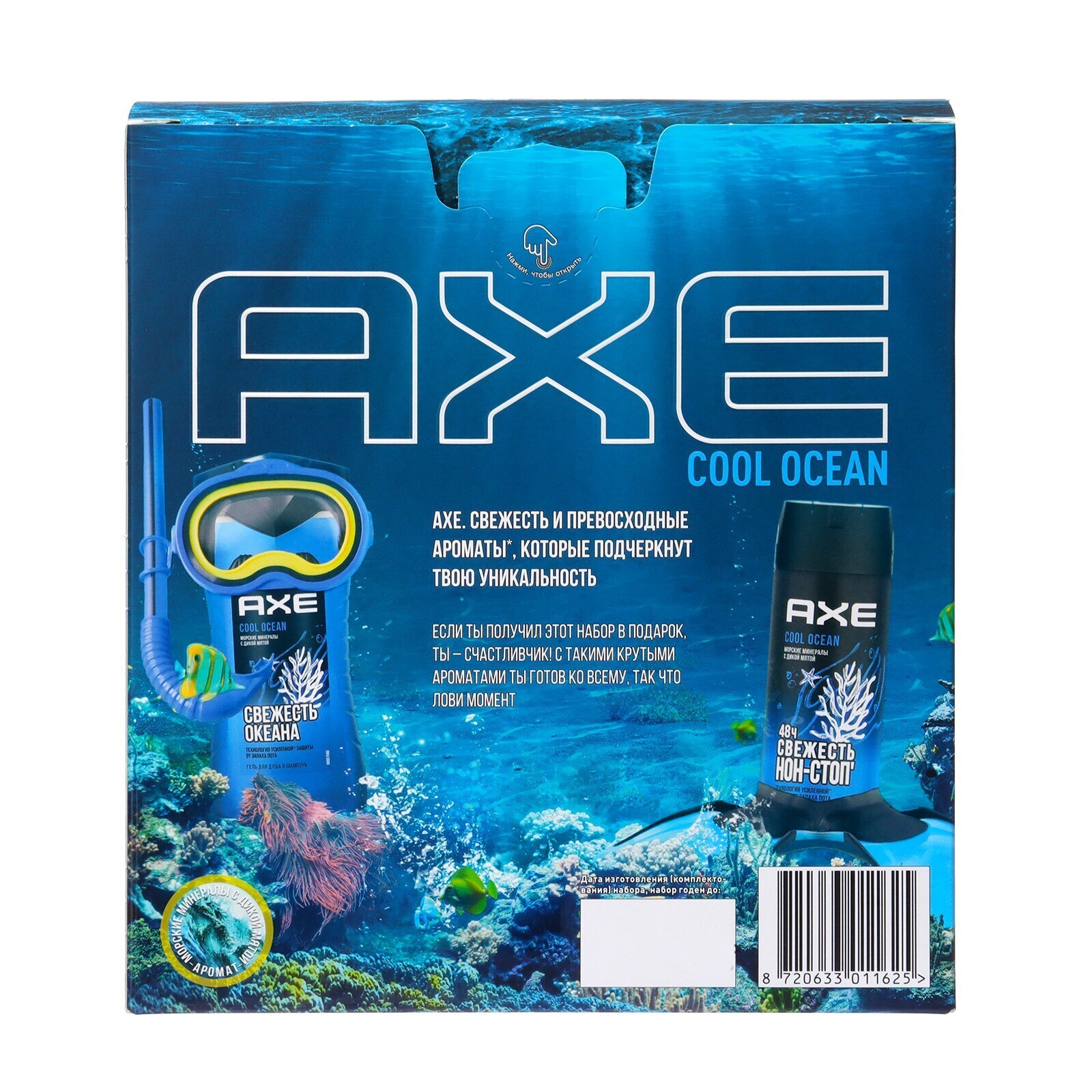 Подарок, который подчеркнет его уникальность и будет востребован каждый день – набор COOL OCEAN от Axe! Идеальное сочетание, чтобы максимально быстро привести себя в порядок и ощущать свежесть!