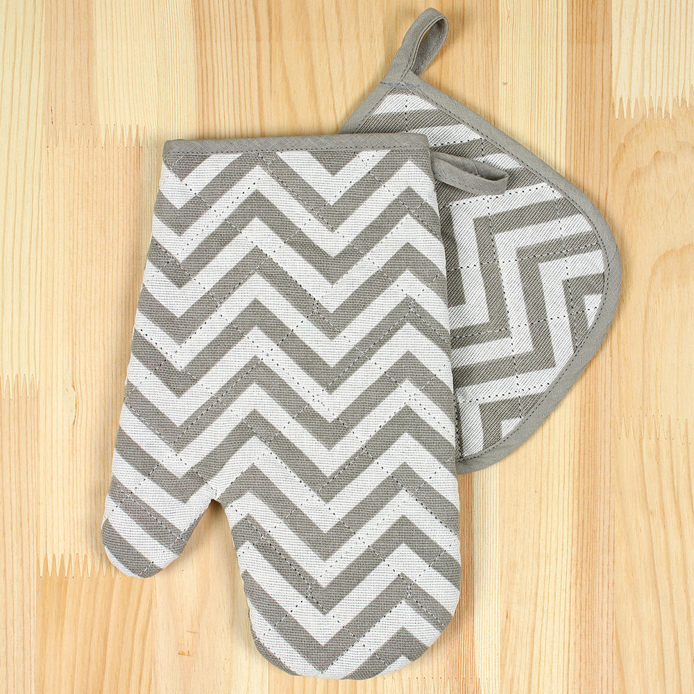Набор кухонный "Зигзиг", лён (2пр.): прихватка 18x18см, рукавичка 28x18см ТК Русский Дом 00-00008415