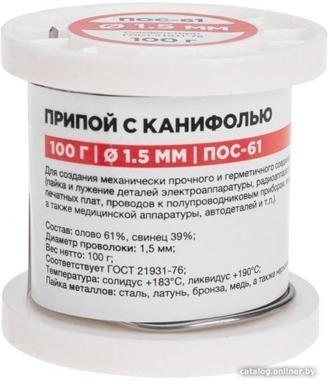 - Состав припоя олово (61%), свинец (39%)