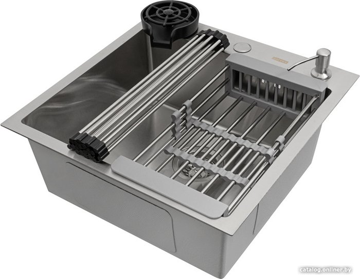 КомплектацияВ кухонной мойке предусмотрено только два отверстия: под смеситель и дозатор или автоматический омыватель стаканов на выбор. Можно самостоятельно вырезать еще одно отверстие под аксессуар.