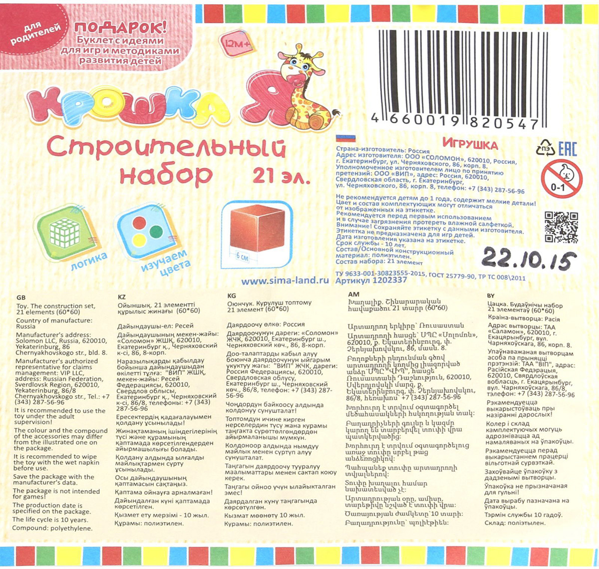 - База содержит информацию о штрихкодах 1 816 200 товаров. Товары встречались в продаже на российском рынке в период с начала 2021 до конца 2022 года
