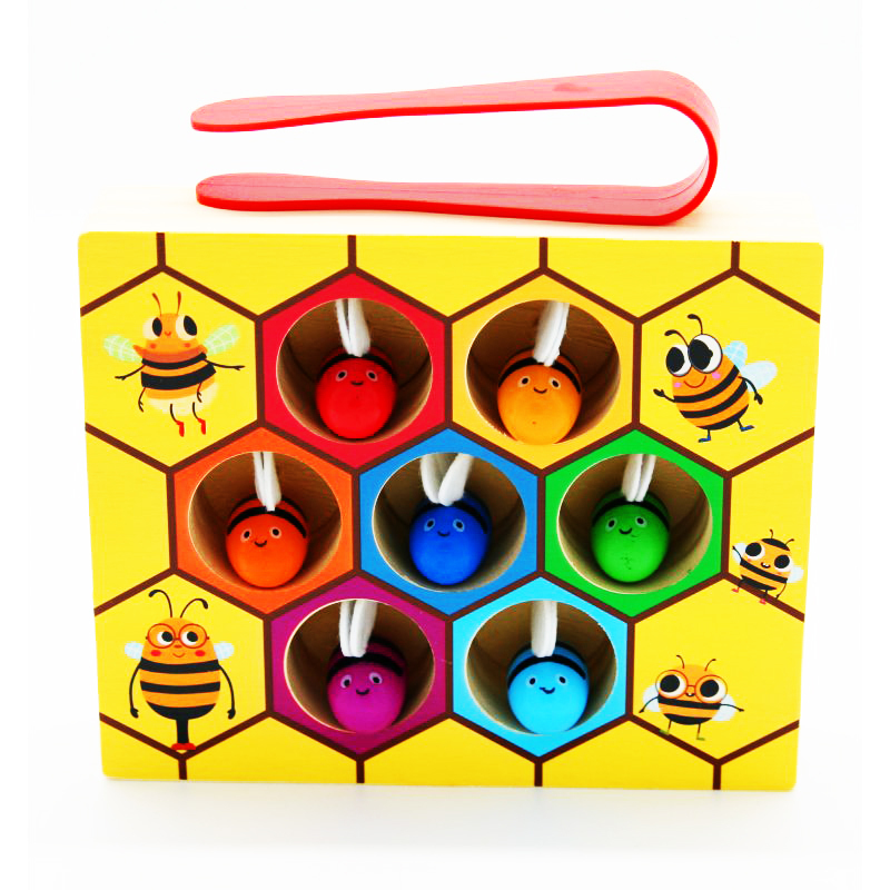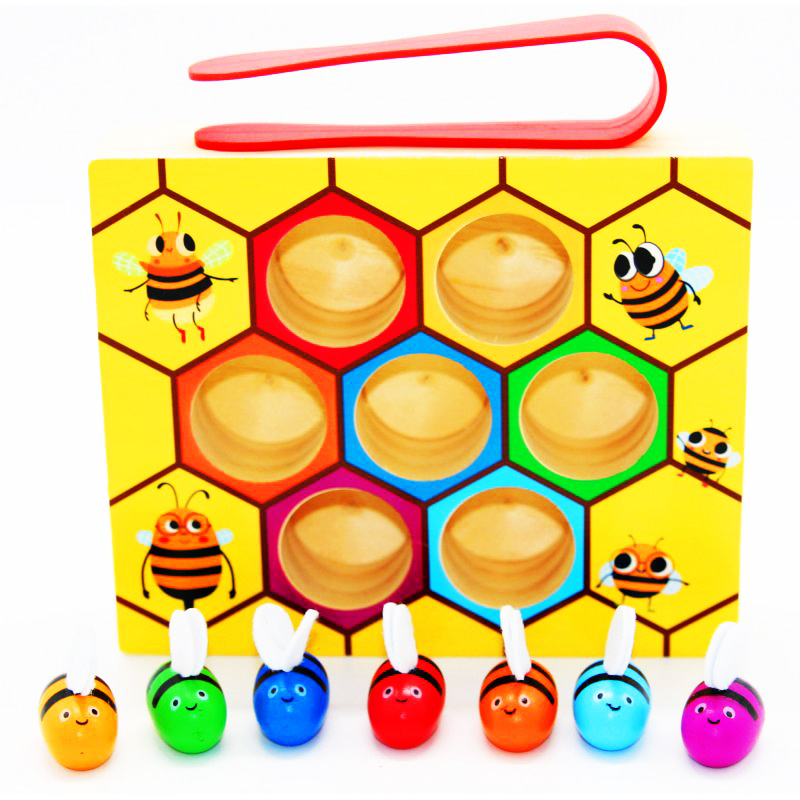 Деревянная игрушка Пчелки с пинцетом (улей Монтессори)