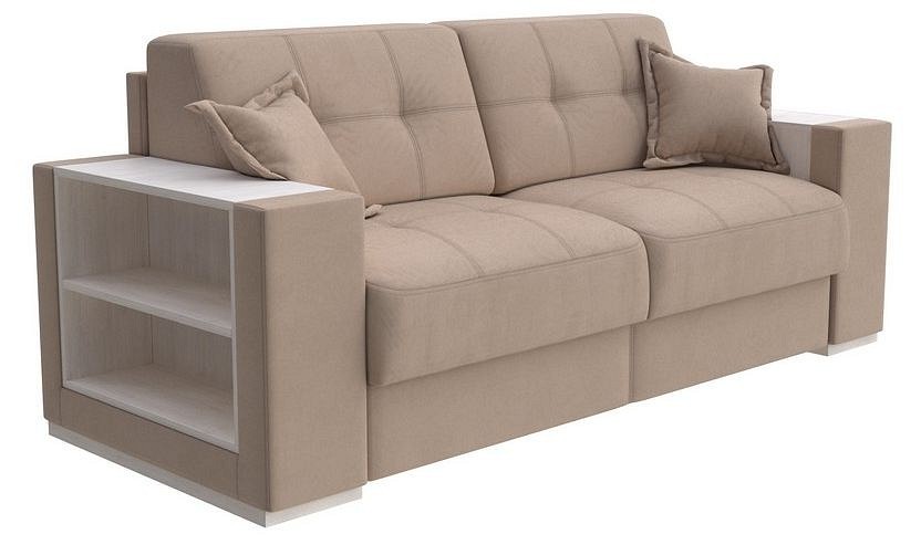 Длина спального места, мм: 1960, Ширина спального места, мм: 1400, Механизм трансформации: Раскладушка итальянская, Цвет обивки: коричневый Enigma 17, Материал обивки: ткань, Художественное описание товара: Подходит для ежедневного использования. Удобный механизм трансформации. Спинка-изголовье декорирована вертикальной строчкой и не имеет зазоров из технической ткани, поэтому диван в разобранном виде выглядит полноценной кроватью с оформленным изголовьем. Сварная решетка основания обеспечивает ровную поверхность для матраса. Матрас надежно крепятся к спальному месту и складываются вместе с механизмом трансформации. Для дивана подходит матрас серии Orto Synergy Memory (артикул ORM_140-196_OrtoSynergy-Memory), Synergy Hard (ариткул ORM_140-196_Synergy-Hard), Synergy Middle (артикул ORM_140-196_Synergy-Middle), Synergy Soft (артикул ORM_140-196_Synergy-Soft)., Дополнительные параметры: подлокотники выполнены из ЛДСП Е1, цвет - дуб шамони, Основной цвет мебели: коричневый