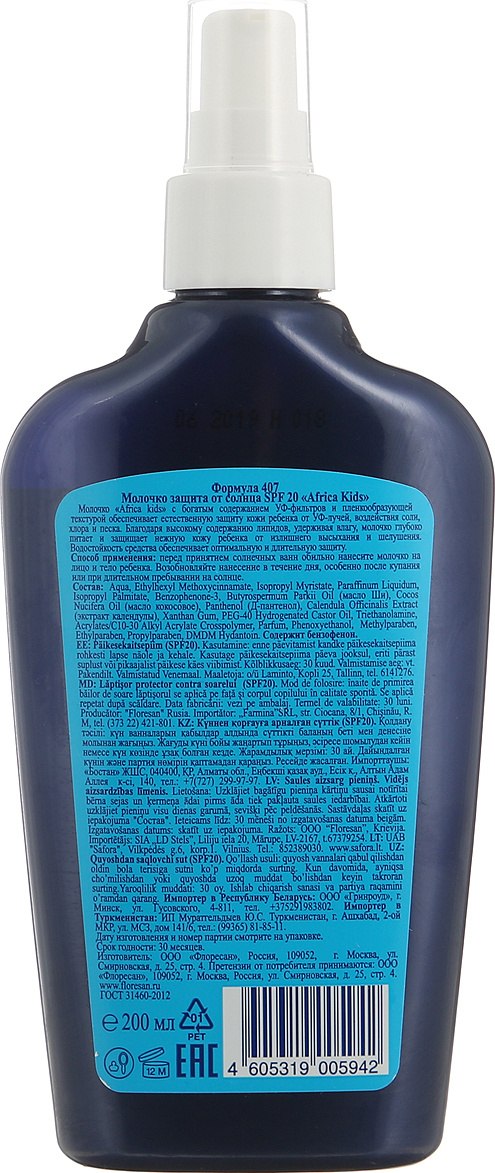 Floresan Africa Kids Молочко защита от солнца SPF 20, 200 мл