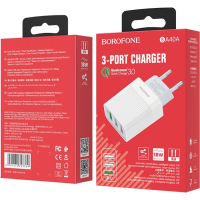 Borofone BA40AW 3 USB QC3.0 – універсальний зарядний пристрій для гаджетів. Підтримує функцію швидкого заряджання, таким чином забезпечує високу швидкість заряджання.