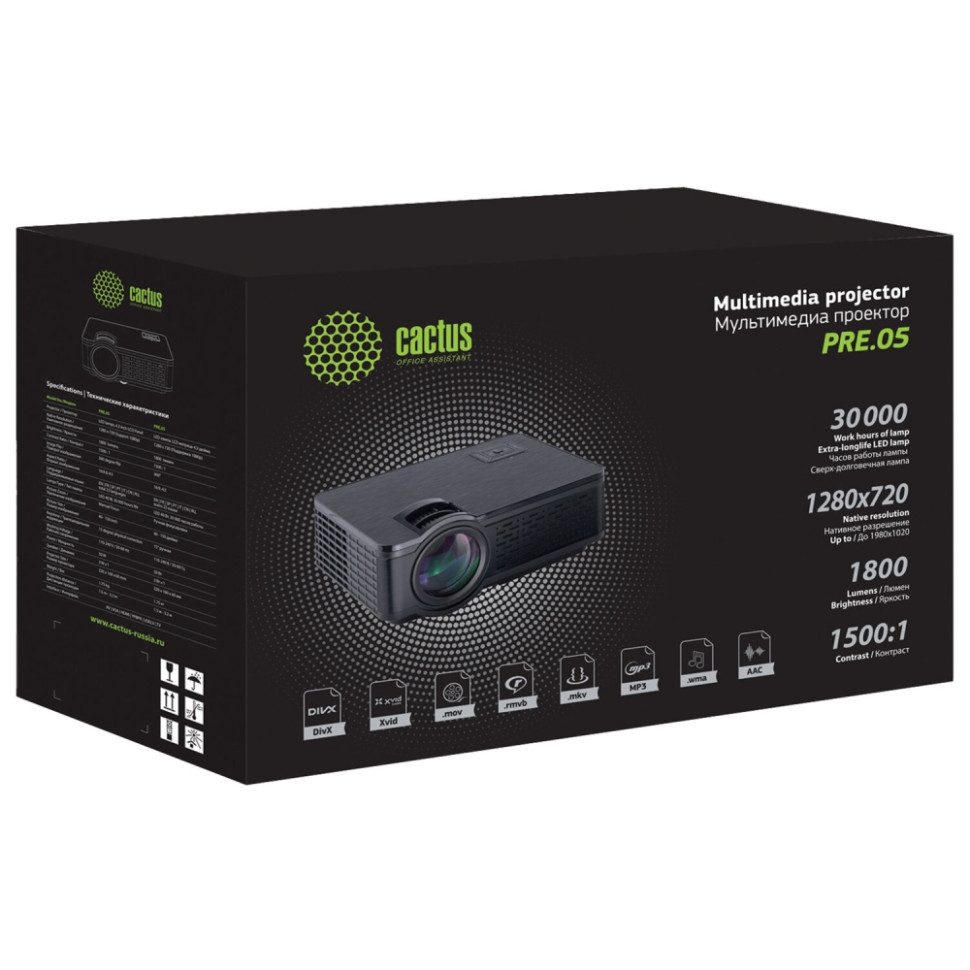 Проектор CACTUS CS-PRE.05B.WXGA, LCD, 1280x720, 16:9, 1800 лм, 1500:1, 1,75 кг (354831)