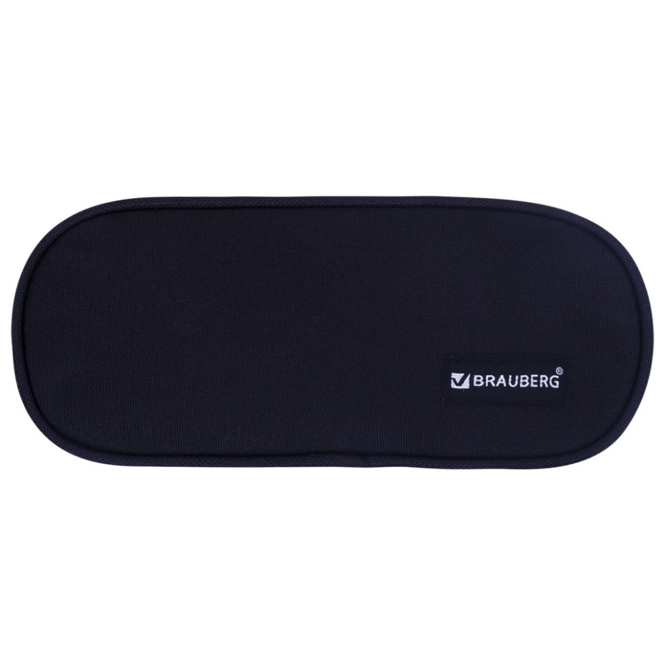 Нарушена упаковка! <287498> Пенал-косметичка BRAUBERG овальный, полиэстер, "Black", 22х9х5 см, 229271