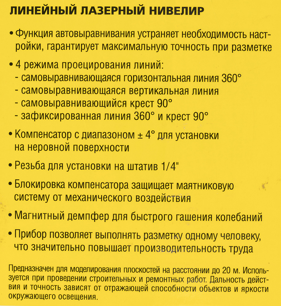 • Тип прибора Лазерный нивелир