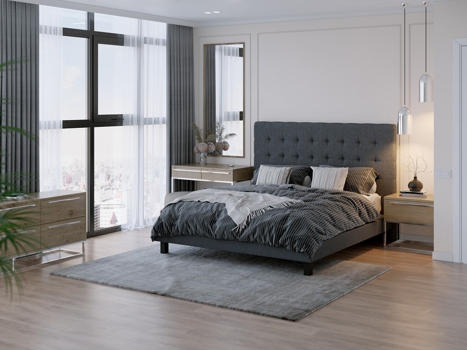 Длина спального места, мм: 2000, Ширина спального места, мм: 1400, Цвет обивки: серый Savana Grey, Материал обивки: рогожка, Материал корпуса: МДФ, фанера, Художественное описание товара: Красивая кровать Madrid очарует вас с первого взгляда и станет акцентом в вашей спальни. Ее элегантный вид вписывается в любой интерьер. В комплекте Boxspring Standart - основание с березовыми ламелями. Каркас основания выполнен из высококачественных материалов: МДФ и фанеры, усиленной внутри ребрами жесткости. Односпальный размер основания (800/900/1000 мм) имеет систему крепления между собой., Дополнительные параметры: Высота спального места от пола - 300 мм, толщина изголовья - 100 мм, высота опор - 100 мм, высота бокса - 200 мм.