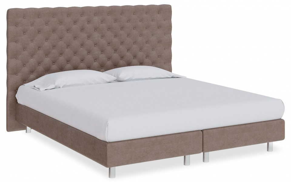 Длина спального места, мм: 2000, Ширина спального места, мм: 1600, Цвет обивки: коричневый Лофти кофейный, Материал обивки: велюр, Материал корпуса: ЛДСП Е1, МДФ, Художественное описание товара: Высокое изголовье кровати Paris украшено стежкой-капитоне. Это придает особую элегантность и воплощение французской классики. Наибольшую популярность во всей Европе этот декоративный элемент обрел к середине XIX века. В комплекте Boxspring Lift - основание с подъемным механизмом и местом для хранения. Установлены две усиленные металлические решетки на четырех газовых лифтах, имеется вместительное место для хранения постельного белья, одежды и прочих спальных принадлежностей. Ножки круглые в сечении, выполненные из металла цвета хром. Односпальный размер основания (800/900/1000 мм) имеет систему крепления между собой., Дополнительные параметры: Высота спального места от пола - 300 мм, толщина изголовья - 80 мм, высота опор - 100 мм, высота бокса - 200 мм.