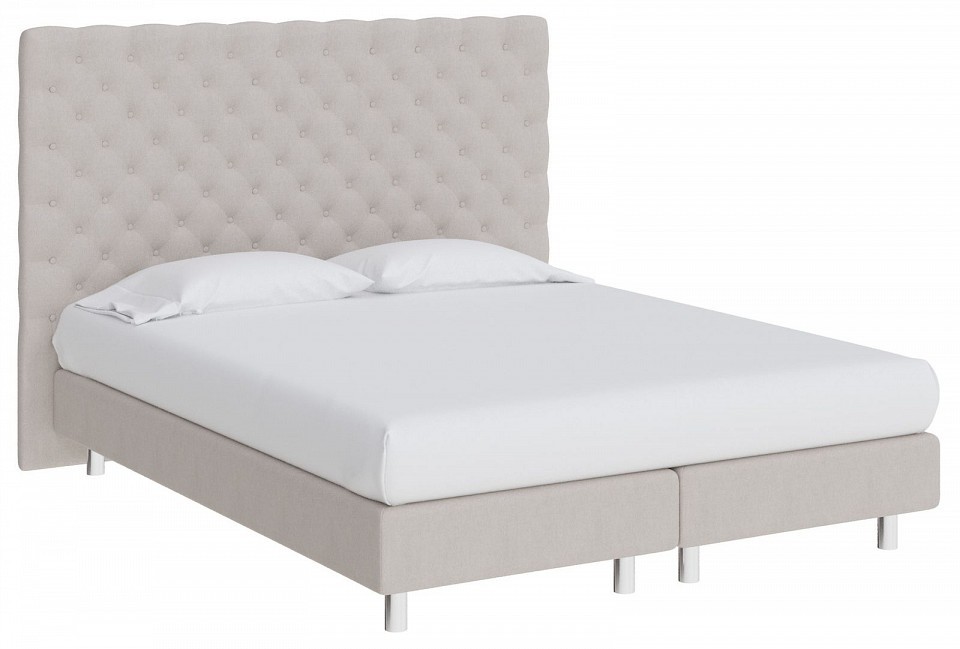 Длина спального места, мм: 2000, Ширина спального места, мм: 900, Цвет обивки: молочный Тетра, Материал обивки: рогожка, Материал корпуса: МДФ, фанера, Художественное описание товара: Высокое изголовье кровати Paris украшено стежкой-капитоне. Это придает особую элегантность и воплощение французской классики. Наибольшую популярность во всей Европе этот декоративный элемент обрел к середине XIX века. В комплекте Boxspring Elite - основание с пружинным блоком Bonnell, который обеспечивает равномерное распределение нагрузки на всю поверхность спального места и снижает нагрузку на матрас, что значительно увеличивает срок службы. Каркас основания выполнен из высококачественных материалов: МДФ и фанеры, усиленной внутри ребрами жесткости. Ножки круглые в сечении, выполненные из металла цвета хром. Односпальный размер основания (800/900/1000 мм) имеет систему крепления между собой., Дополнительные параметры: Высота спального места от пола - 300 мм, толщина изголовья - 80 мм, высота опор - 100 мм, высота бокса - 200 мм.