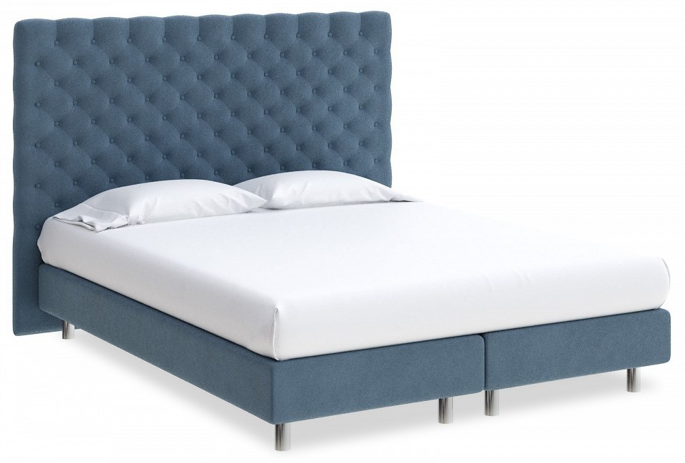 Длина спального места, мм: 2000, Ширина спального места, мм: 900, Цвет обивки: прованский синий Monopoly 792, Материал обивки: велюр, Материал корпуса: МДФ, фанера, Художественное описание товара: Высокое изголовье кровати Paris украшено стежкой-капитоне. Это придает особую элегантность и воплощение французской классики. Наибольшую популярность во всей Европе этот декоративный элемент обрел к середине XIX века. В комплекте Boxspring Elite - основание с пружинным блоком Bonnell, который обеспечивает равномерное распределение нагрузки на всю поверхность спального места и снижает нагрузку на матрас, что значительно увеличивает срок службы. Каркас основания выполнен из высококачественных материалов: МДФ и фанеры, усиленной внутри ребрами жесткости. Ножки круглые в сечении, выполненные из металла цвета хром. Односпальный размер основания (800/900/1000 мм) имеет систему крепления между собой., Дополнительные параметры: Высота спального места от пола - 300 мм, толщина изголовья - 80 мм, высота опор - 100 мм, высота бокса - 200 мм.