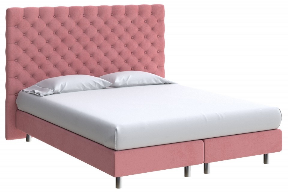 Длина спального места, мм: 2000, Ширина спального места, мм: 900, Цвет обивки: розовый ягодный сорбет Ultra, Материал обивки: велюр, Материал корпуса: МДФ, фанера, Художественное описание товара: Высокое изголовье кровати Paris украшено стежкой-капитоне. Это придает особую элегантность и воплощение французской классики. Наибольшую популярность во всей Европе этот декоративный элемент обрел к середине XIX века. В комплекте Boxspring Elite - основание с пружинным блоком Bonnell, который обеспечивает равномерное распределение нагрузки на всю поверхность спального места и снижает нагрузку на матрас, что значительно увеличивает срок службы. Каркас основания выполнен из высококачественных материалов: МДФ и фанеры, усиленной внутри ребрами жесткости. Ножки круглые в сечении, выполненные из металла цвета хром. Односпальный размер основания (800/900/1000 мм) имеет систему крепления между собой., Дополнительные параметры: Высота спального места от пола - 300 мм, толщина изголовья - 80 мм, высота опор - 100 мм, высота бокса - 200 мм.