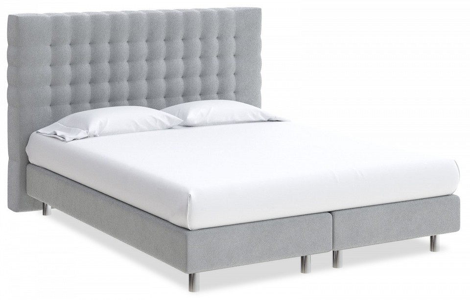 Длина спального места, мм: 2000, Ширина спального места, мм: 900, Цвет обивки: серый Monopoly 960 Ниагара, Материал обивки: велюр, Материал корпуса: МДФ, фанера, Художественное описание товара: Мягкая рельефность спинки создана благодаря современному дизайну, подкупает простыми формами с четко выверенными пропорциями. В комплекте Boxspring Elite - основание с пружинным блоком Bonnell, который обеспечивает равномерное распределение нагрузки на всю поверхность спального места и снижает нагрузку на матрас, что значительно увеличивает срок службы. Каркас основания выполнен из высококачественных материалов: МДФ и фанеры, усиленной внутри ребрами жесткости. Ножки круглые в сечении, выполненные из металла цвета хром. Односпальный размер основания (800/900/1000 мм) имеет систему крепления между собой., Дополнительные параметры: Высота спального места от пола - 300 мм, толщина изголовья - 200 мм, высота опор - 100 мм, высота бокса - 200 мм.