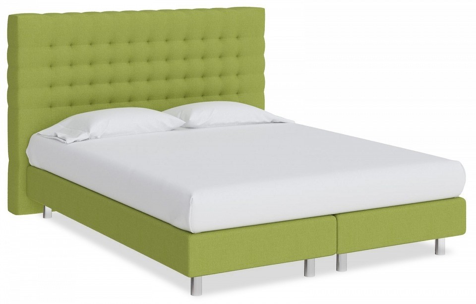 Длина спального места, мм: 2000, Ширина спального места, мм: 900, Цвет обивки: зеленый Тетра яблоко, Материал обивки: рогожка, Материал корпуса: МДФ, фанера, Художественное описание товара: Мягкая рельефность спинки создана благодаря современному дизайну, подкупает простыми формами с четко выверенными пропорциями. В комплекте Boxspring Elite - основание с пружинным блоком Bonnell, который обеспечивает равномерное распределение нагрузки на всю поверхность спального места и снижает нагрузку на матрас, что значительно увеличивает срок службы. Каркас основания выполнен из высококачественных материалов: МДФ и фанеры, усиленной внутри ребрами жесткости. Ножки круглые в сечении, выполненные из металла цвета хром. Односпальный размер основания (800/900/1000 мм) имеет систему крепления между собой., Дополнительные параметры: Высота спального места от пола - 300 мм, толщина изголовья - 200 мм, высота опор - 100 мм, высота бокса - 200 мм.