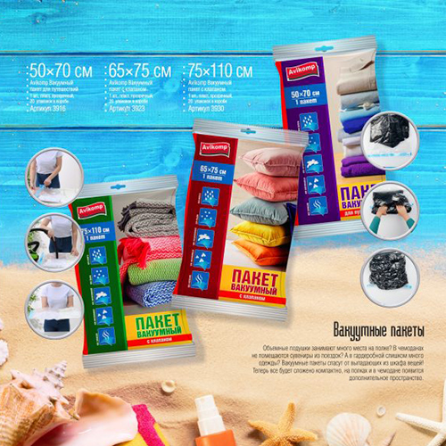 Вакуумные пакеты предназначены для компактного хранения предметов одежды любого размера и крупных вещей. Позволяют уменьшить объем вещей на 70%.