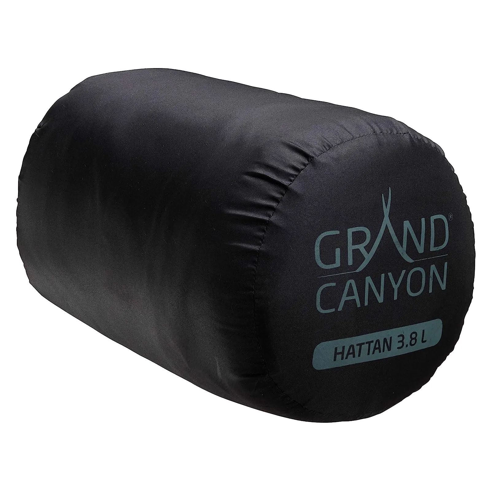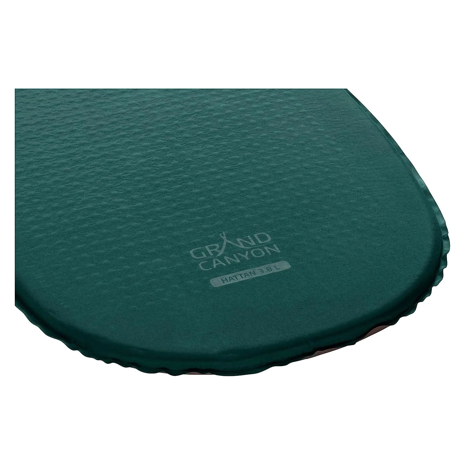 Самонадувний килимок Grand Canyon Hattan 3.8 L - це подовжена версія, що дозволяє комфортно розмістить користувачам із зростом до 2 метрів, та забезпечує належні термоізоляційні властивості при температурі до -2.4°С. При цьому модель є досить компактною та легкою, як для самонадувного килимка. Верхня оболонка Hattan 3.8 L має м’яку на дотик текстильну поверхню, нижня сторона мінімізує ковзання на гладкій підлозі намету. Простий у використанні гвинтовий клапан забезпечує швидке самонадування та дає можливість подальшого надування та швидкого здування після використання.