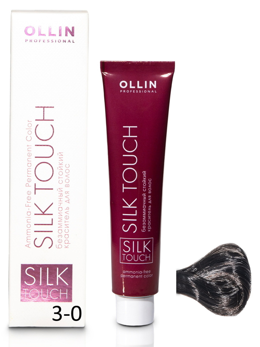 OLLIN PROFESSIONAL Крем-краситель SILK TOUCH для окрашивания волос 3/0 темный шатен 60 мл