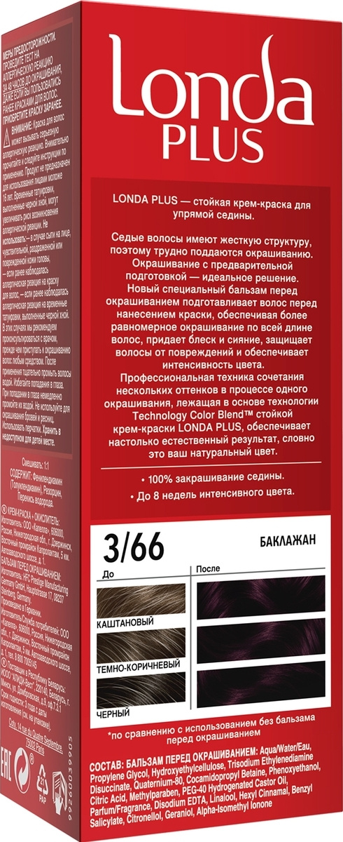 Крем-краска для волос Londa Plus, для упрямой седины, стойкая, оттенок 3/66, Баклажан