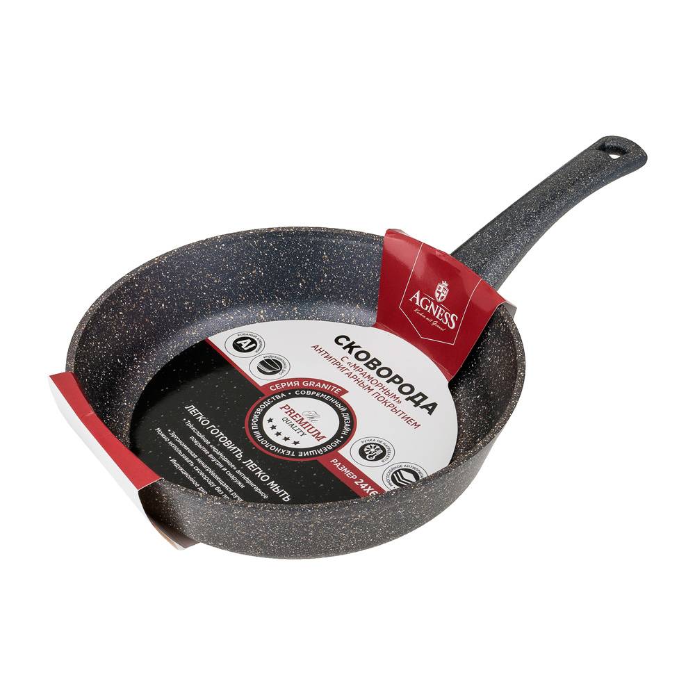 СКОВОРОДА AGNESS ГЛУБОКАЯ С АНТИПРИГАРНЫМ "МРАМОРНЫМ" ПОКРЫТИЕМ, СЕРИЯ GRANITE, 24Х6,1СМ 952-013