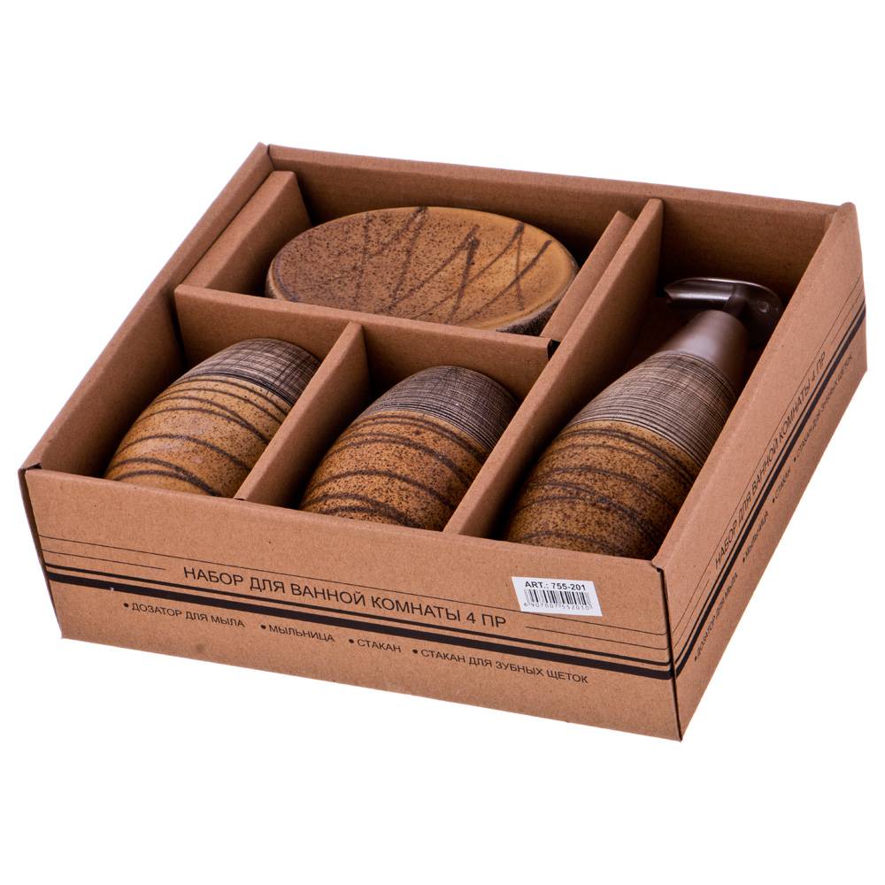 НАБОР ДЛЯ ВАННОЙ КОМНАТЫ 4 ПР. (КОР=12НАБ.) 320 МЛ 7,2*7,2*19СМ 755-201