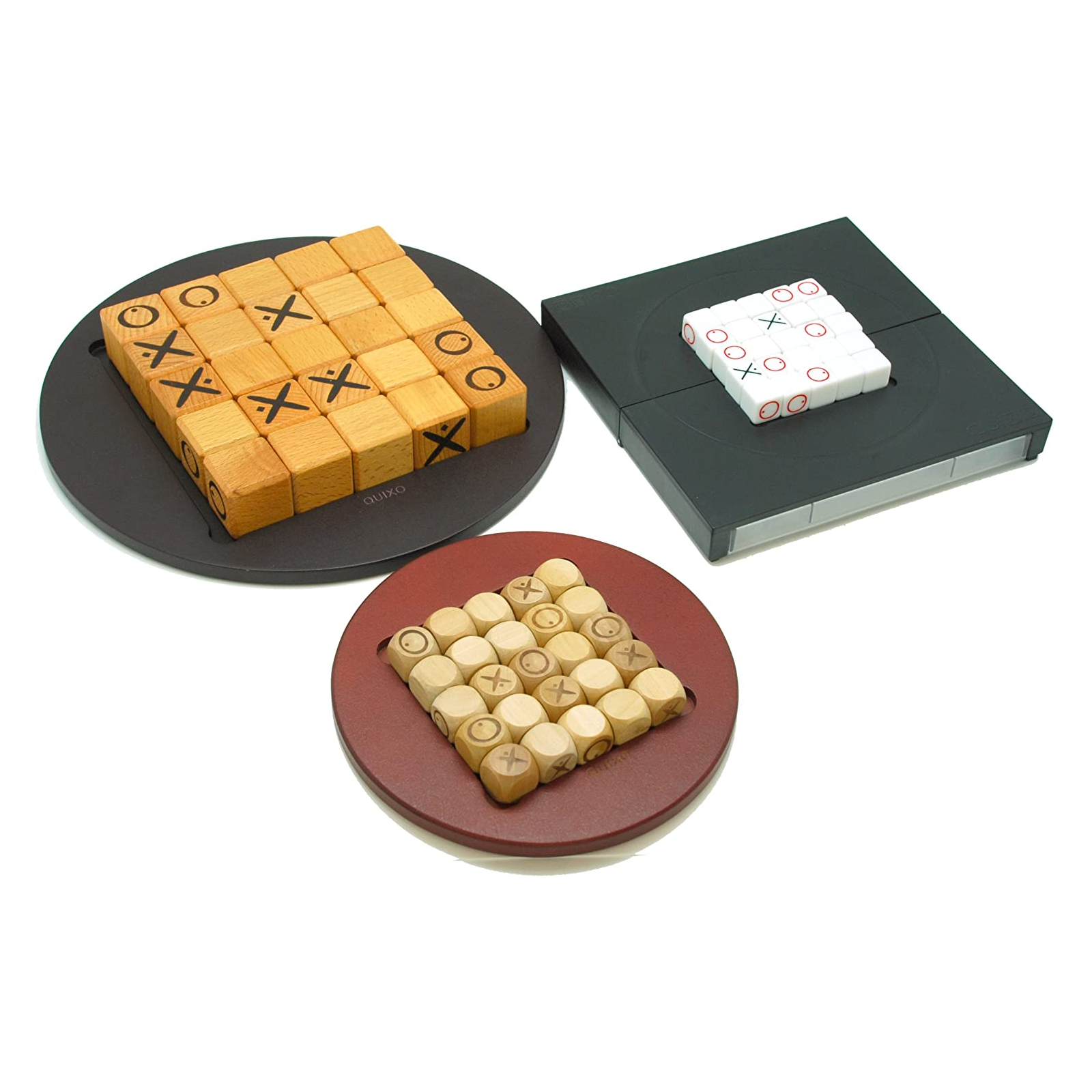 Квіксо Міні (Quixo mini) як і оригіанльна Квіксо, є цікавою інтерпретацією гри в хрестики-нолики. Квіксо Міні (Quixo mini) від свого співбрата лише компактними розмірами. Тепер цією грою можна розважатися і в дорозі. А проводити час за цією грою належить наступним чином: по суті це хрестики-нолики, де необхідно вибудувати лінію з своїх символів. По горизонталі, вериткалі чи діагоналі. Є поле п'ять на п'ять, на ньому кубики з пустими гранями, обернентими вгору. Кожен хід гравець повинен взяти пустий кубик (перевернувши його потрібною гранню вгору), чи кубик з своїм символом і перемістити. Так, вся суть гри заключається в тому, що поле постійно міняє свій зовнішній вигляд. Вибудувати лінію з п'яти символів в таких умовах – та ще задачка. Зате відкривається величезний простір для хитрих комбінацій і пасток. А ще доведеться дуже багато прораховувати, прикидати чи навіть вгадувати можливі ходи опонента. І заради перемоги доведеться постаратися.