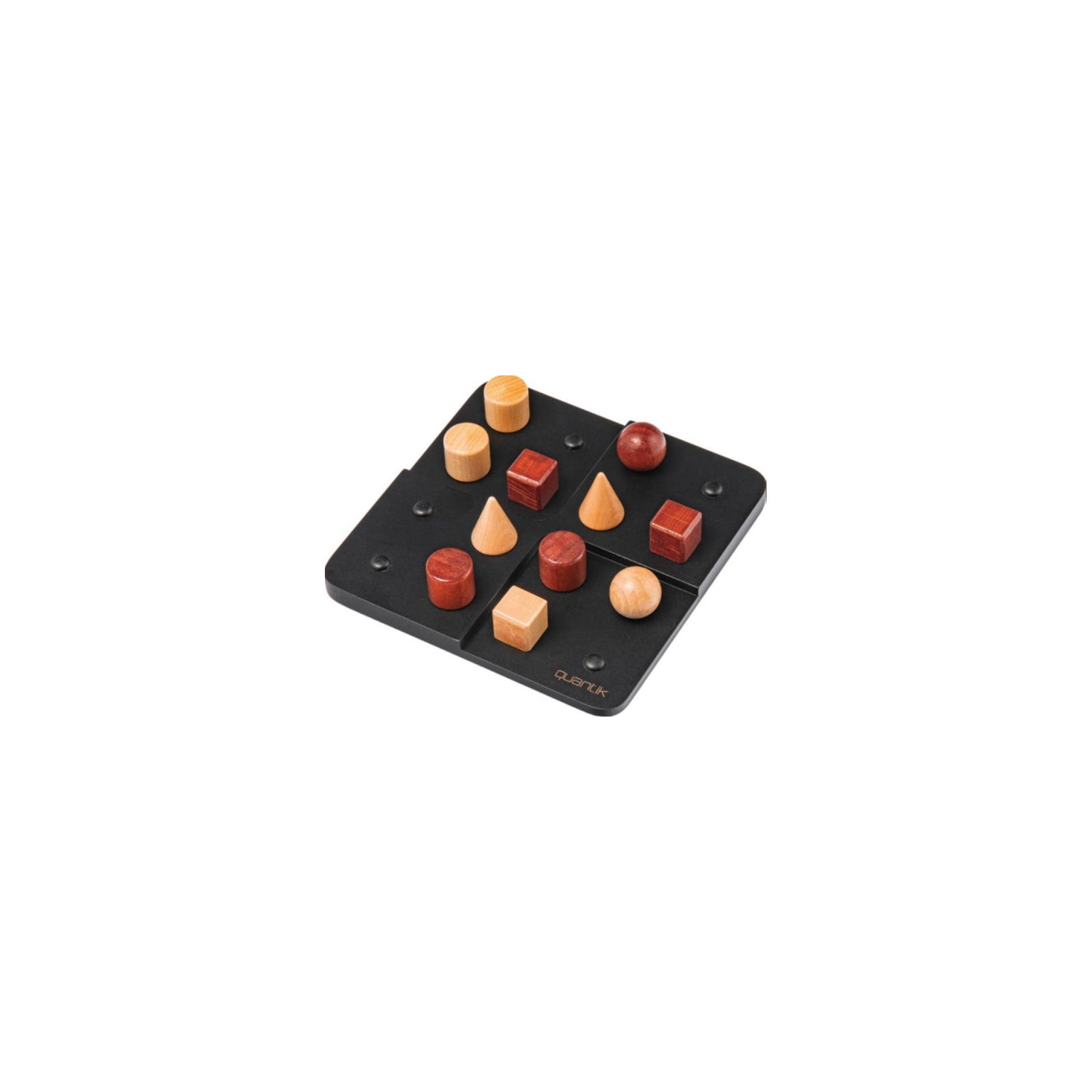 Квантік – це абстрактна гра від Gigamic з якісними дерев’яними фігурками. Перший, хто створить лінію, стовпець або зону, що містить 4 типи деталей, незалежно від кольору, перемагає. Проте забороняється розміщувати ідентичні деталі в стовпці, рядку або зоні, де вони вже є. Якщо вони лише не ваші.