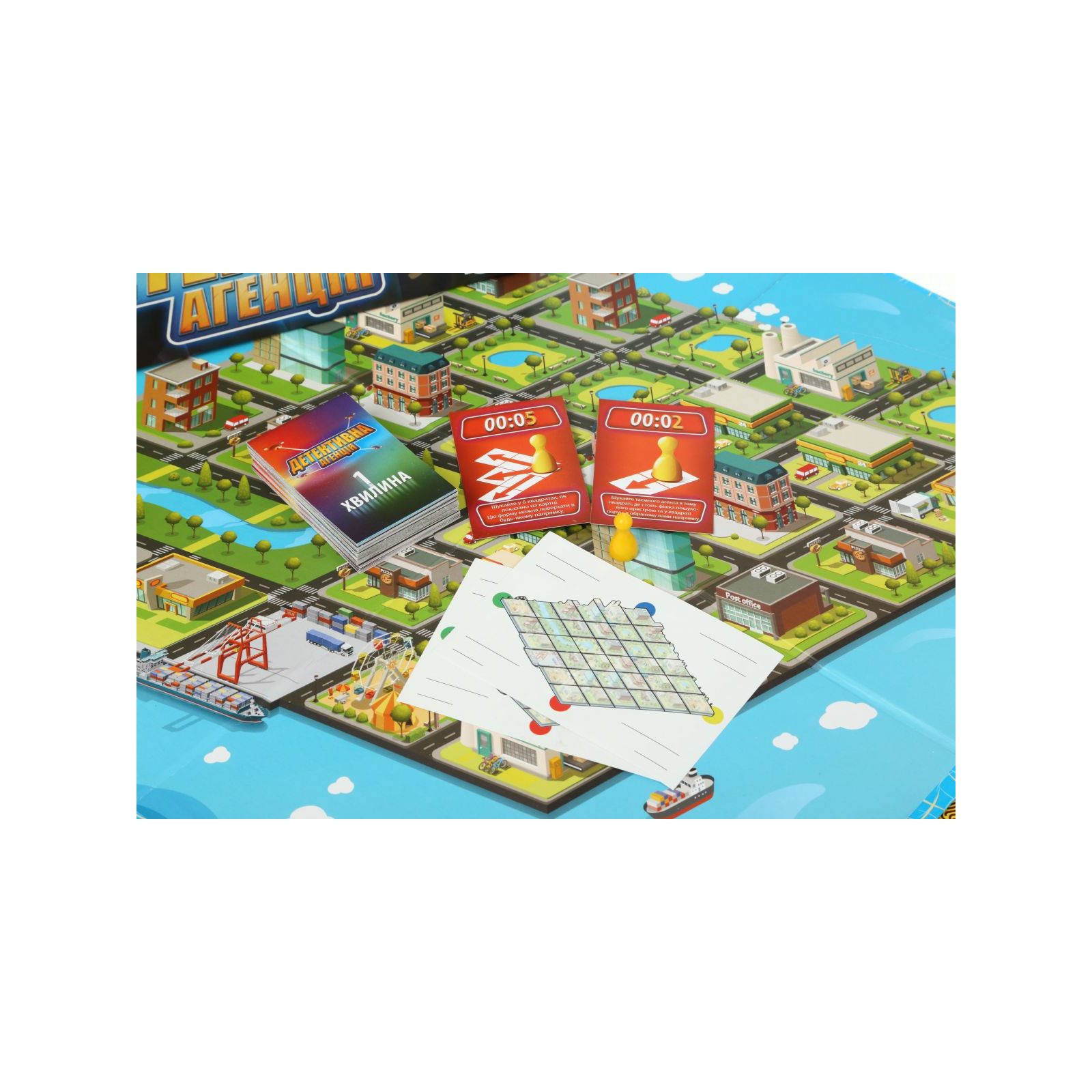Детективне агентство - це сімейна настільна гра для самих справжніх таємних агентів. Кожну партію один з учасників гри стає таємним агентом, який намагається сховатися в лабіринтах міста. Решта гравців стають детективами і за допомогою дедукції і спеціального обладнання повинні знайти цього агента в місті. Природно, чим швидше вони виявлять місцезнаходження агента і чим менше карток обладнання використовують, тим більше переможних балів зароблять в результаті. Переможе той агент, якого шукали найдовше. Комплектація: ігрове поле фішка пошукового приладу правила гри листи з планом міста комплект карток копмлект жетонів.