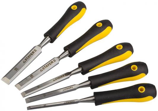 - Прочие особенности и свойства Имеются защитные колпачки на рабочих режущих кромках инструментов для безопасной эксплуатации и хранения. При выполнении ударных работ стамески обладают стальными прочными затыльниками. Снабжены удобными двухкомпонентными противоударными рукоятками.