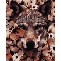 Картина по номерам Strateg Вовк у квітах 40х50 см (VA-2802)