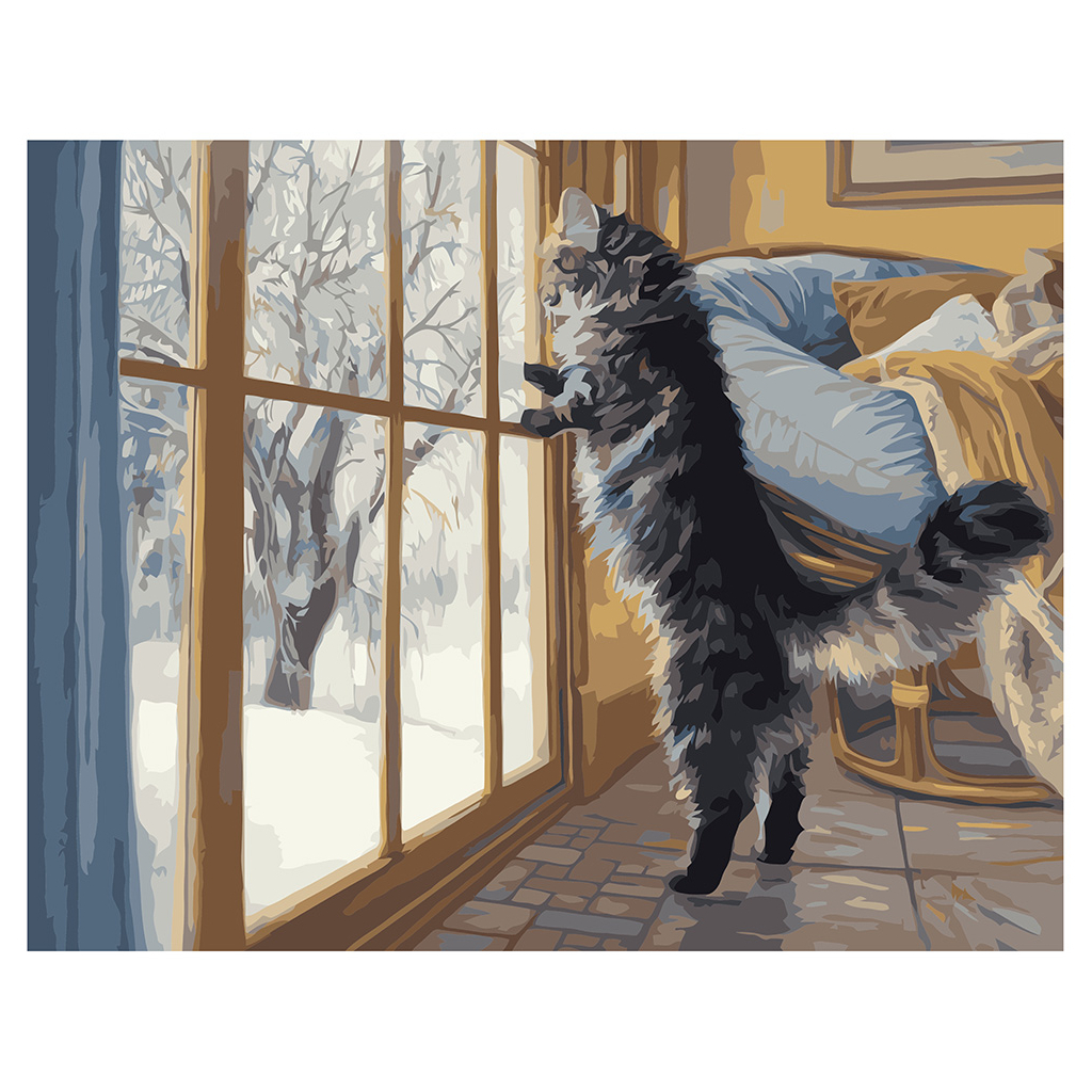 Картина по номерам Strateg Кіт біля вікна 40х50 см VA-0648 (VA-0648)
