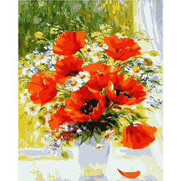 Картина по номерам Strateg Букет польових квітів на підвіконні VA-1628 40х50 см (4820220567413)
