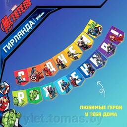 Гирлянда на ленте С Днем Рождения, Мстители, длина 216 см