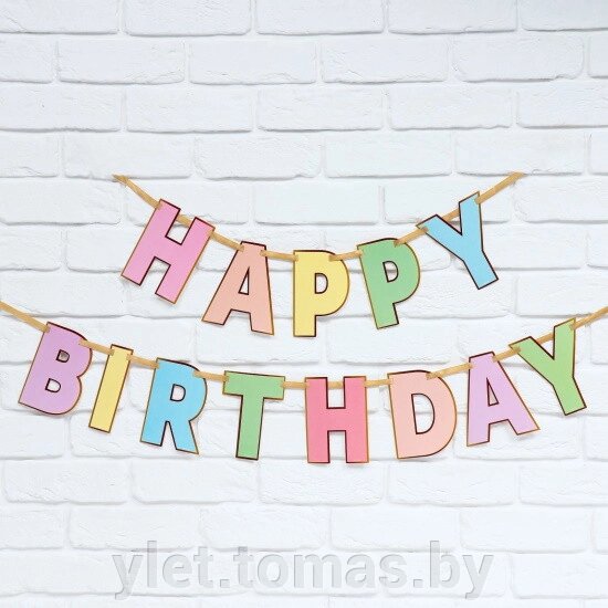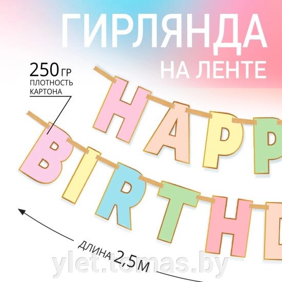 Гирлянда на ленте Happy Birthday, длина 250 см