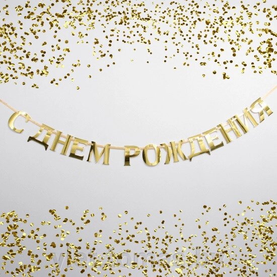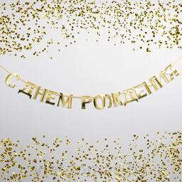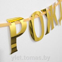 Гирлянда на ленте, металлик С ДР золотая, длина 140 см