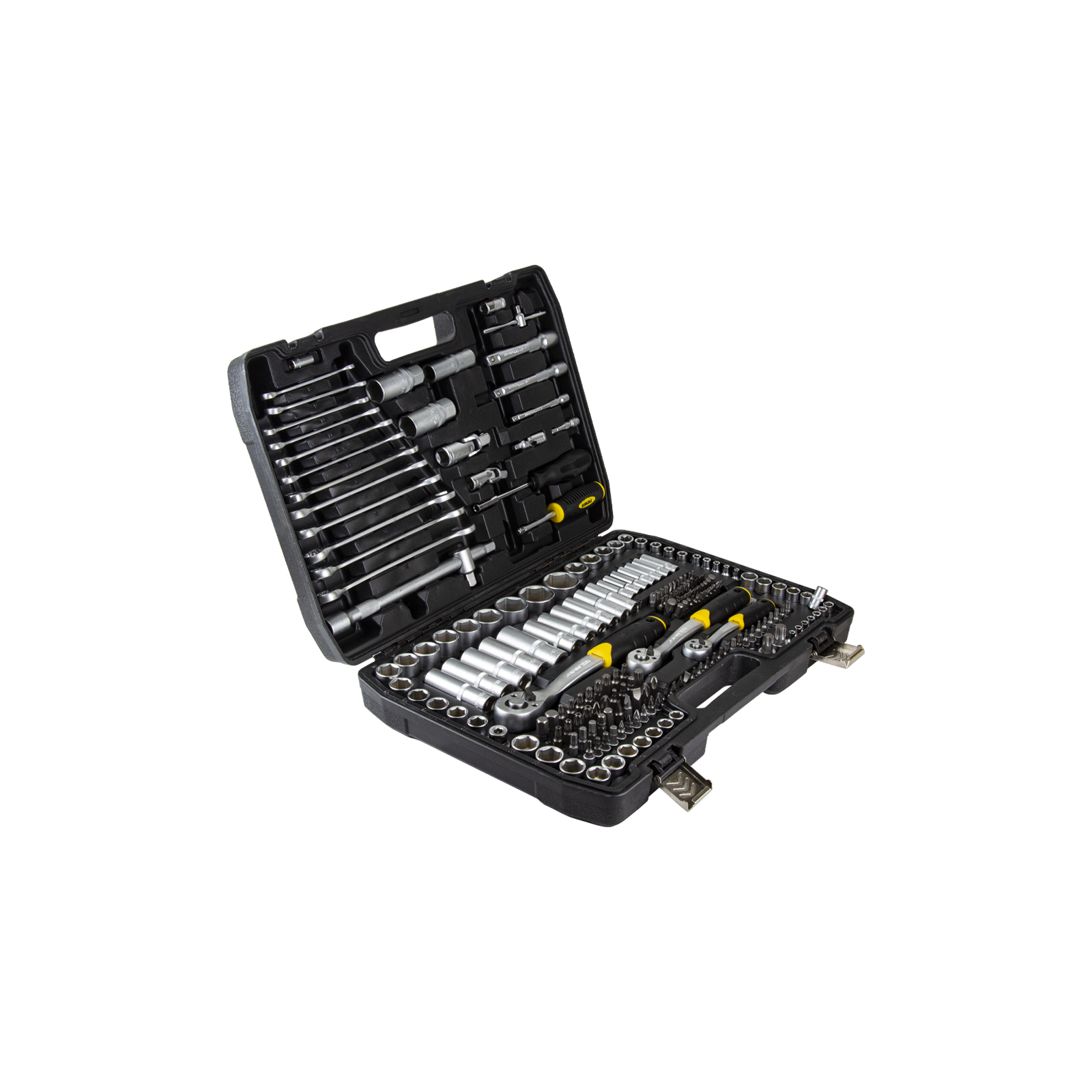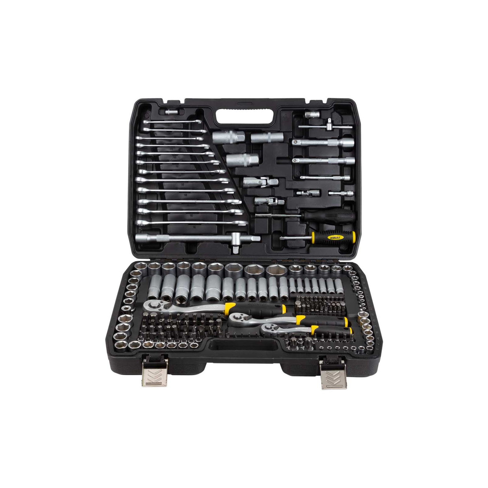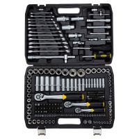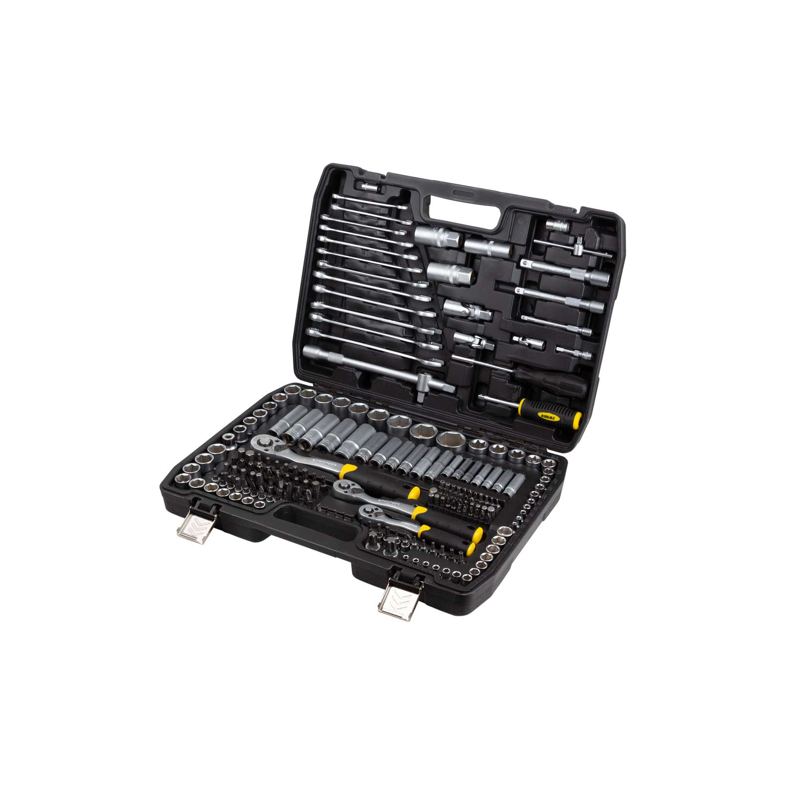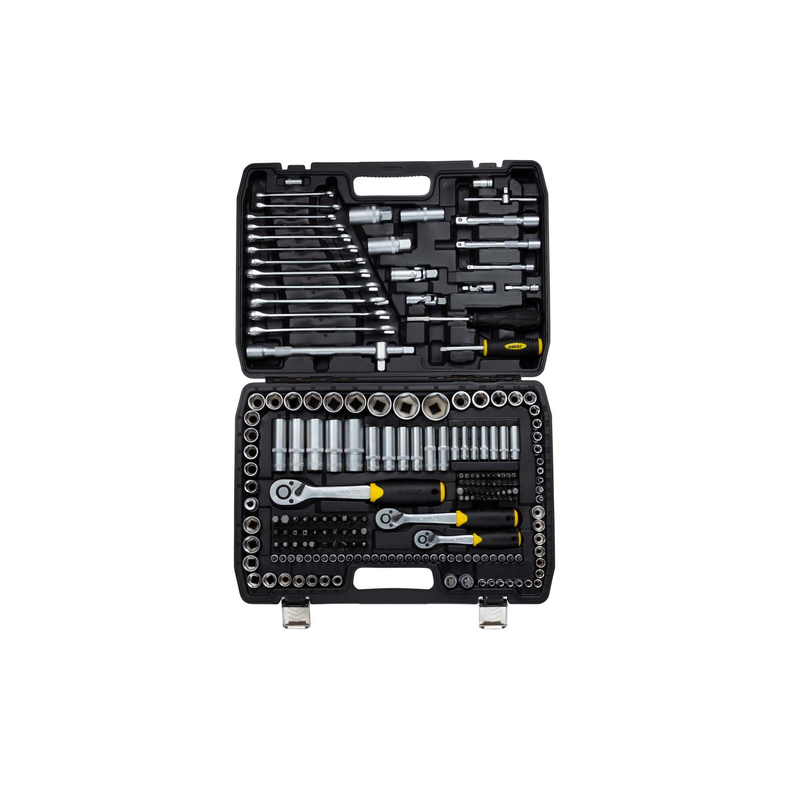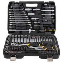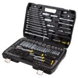 • Комплектація набору торцеві головки , інструменти для роботи з торцевими головками , гайкові ключі , біти , шестигранні/зіркоподібні ключі , тримач для біт , тріскачка , подовжувач , вороток , кардан шарнірний