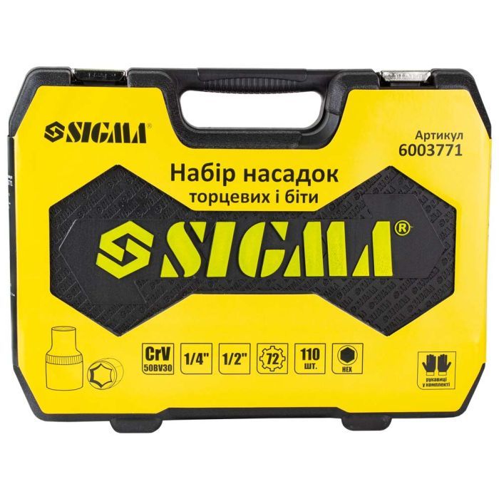 Набір інструментів Sigma насадок торцевих та біт 1/4", 1/2" 110шт CrV mid (6003771)