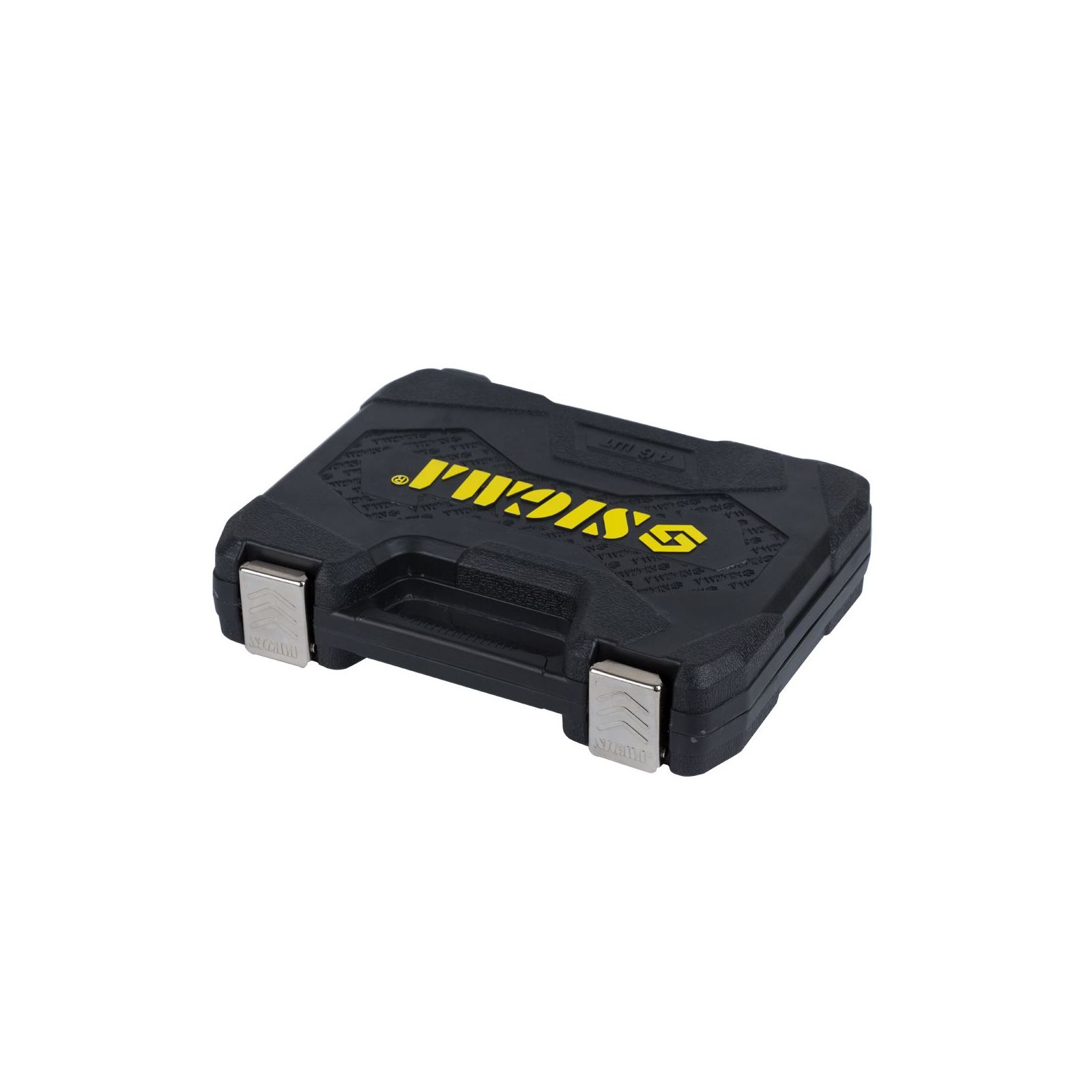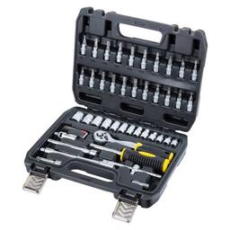 • Комплектація набору торцеві головки , біти , шестигранні/зіркоподібні ключі , тримач для біт , тріскачка , подовжувач , кардан шарнірний