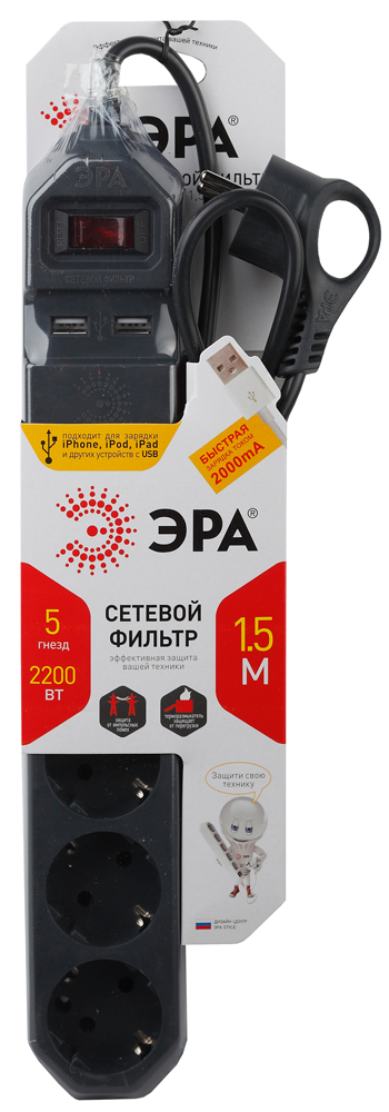 Сетевой фильтр ЭРА USF-5es-1.5m-USB-B