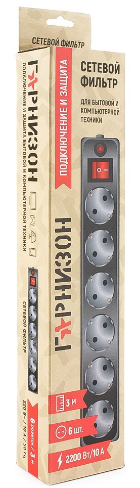 Сетевой фильтр Гарнизон EHB-6, 6 розеток, 1.8 м