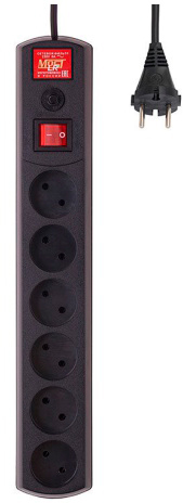 Сетевой фильтр, 1.7 м, Количество розеток: 6, евро без заземления, 1300 Вт, общий выключатель.