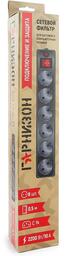 Сетевой фильтр, 0.5 м, Количество розеток: 6, евро с заземлением, общий выключатель.