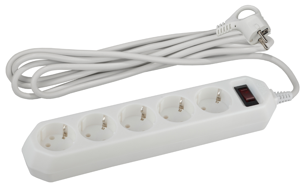 Сетевой фильтр, 3 м, Количество розеток: 5, евро с заземлением, 2200 Вт, общий выключатель.