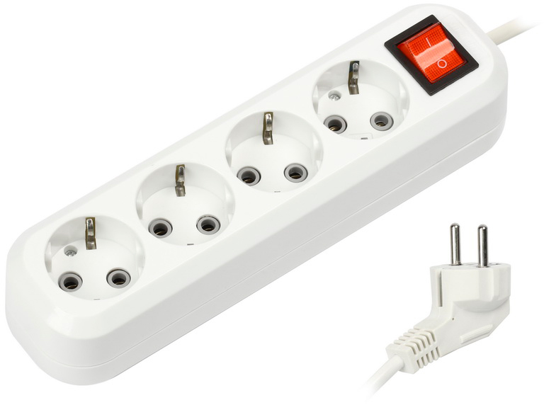 Удлинитель, 5 м, Количество розеток: 4, евро с заземлением, 3500 Вт, общий выключатель.