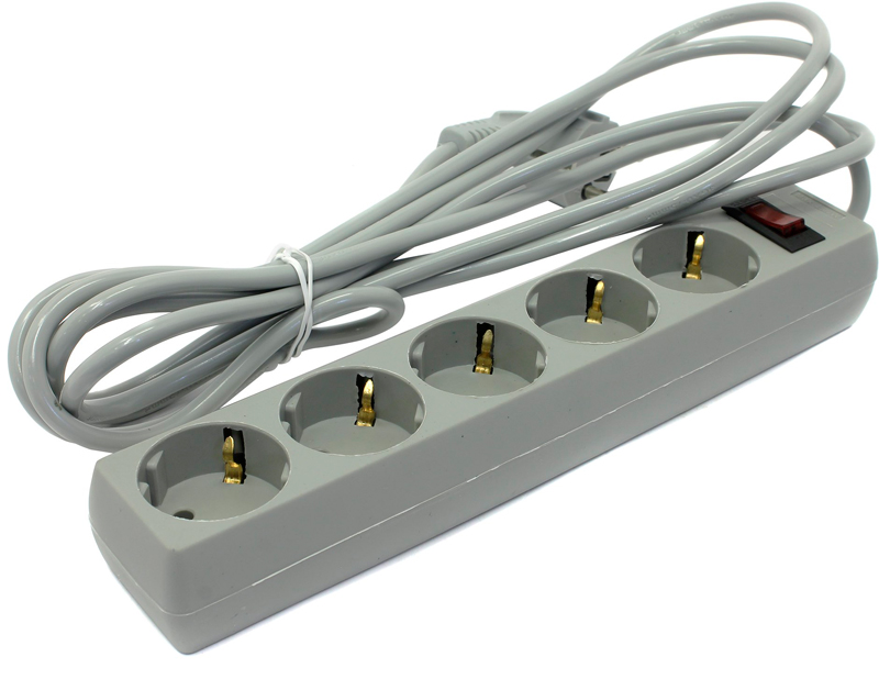 Сетевой фильтр, 1.8 м, Количество розеток: 5, евро с заземлением, 2200 Вт, общий выключатель.