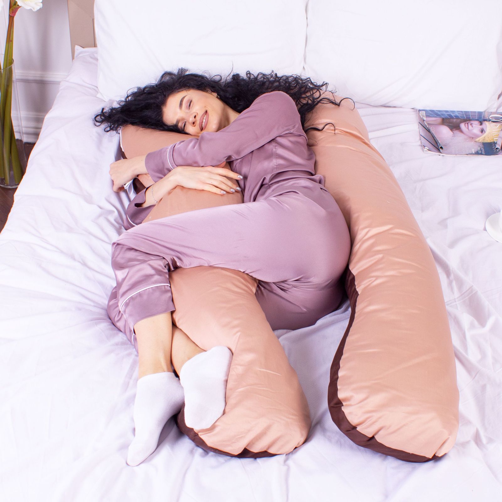 Подушка MirSon для вагітних і відпочинку Delicate Satin №8028 U-подібна Cappuccino (2200006178668)