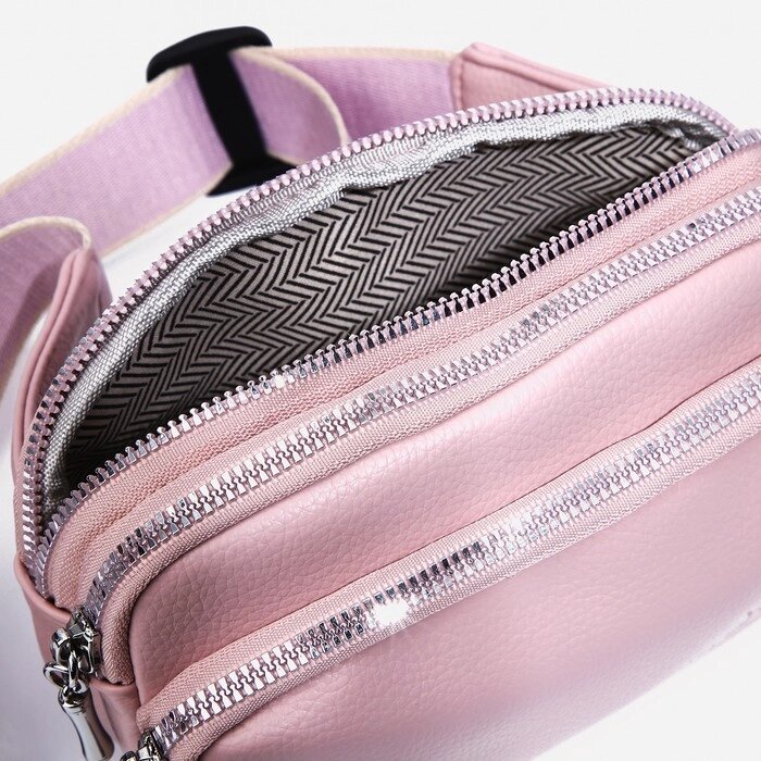 Сумка поясная 20*12*6 см, 2 отд. на молнии, н/карман, розовый